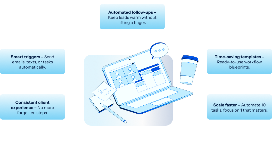 Automate repetitive tasks like follow-ups, reminders, proposals, and client onboarding. With Workflows & Automations, you’ll save time, reduce errors, and keep your clients engaged 24/7.